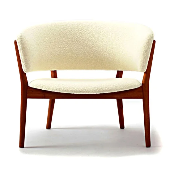 Teak and Ivory wool boucle armchair after one designed by the talented Nanna Ditzel